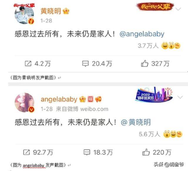 2022年1月28日,Angelababy和黄晓明同步在社交平台发布离婚声明。