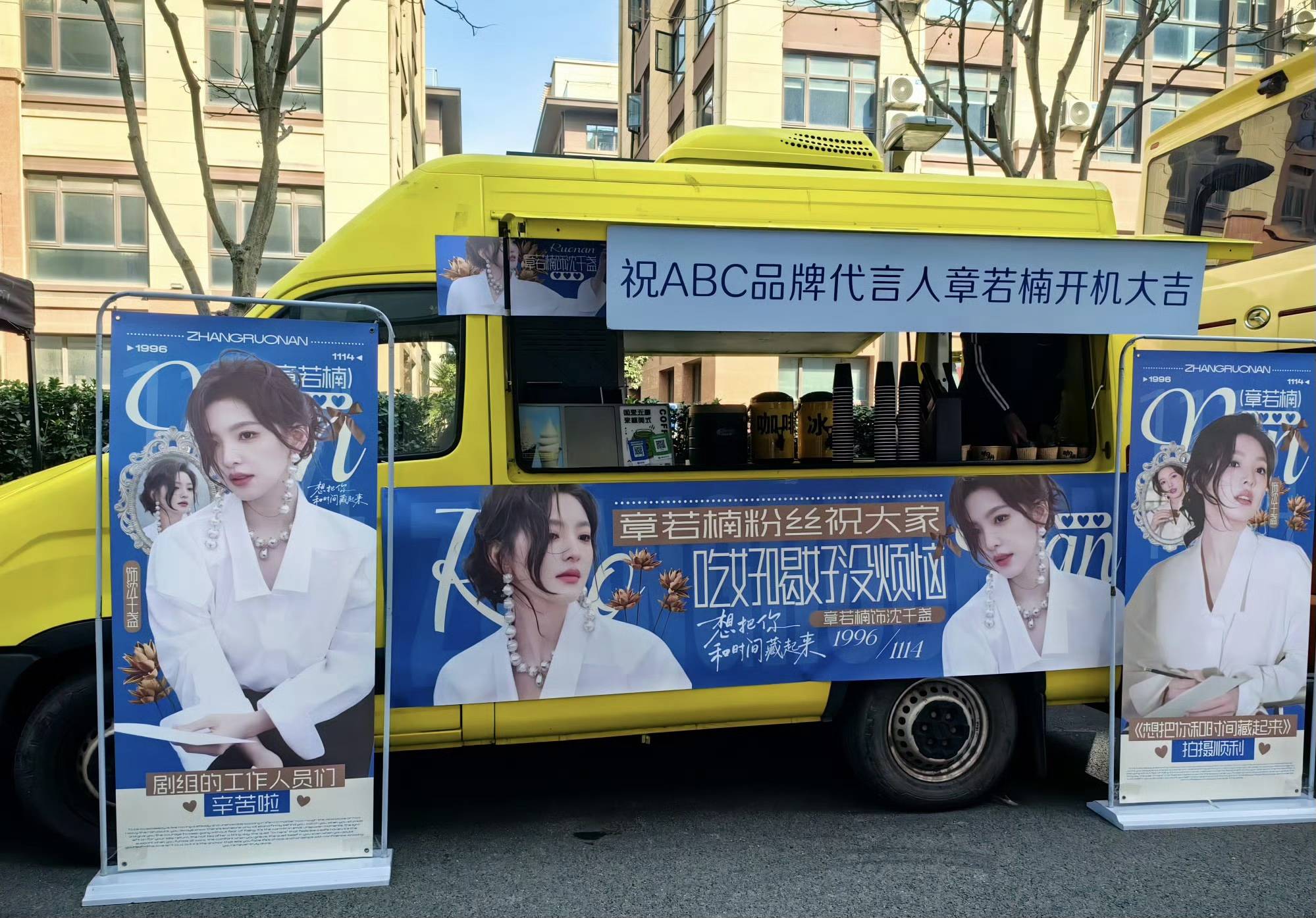 今日一早,剧组在上海某影视基地低调举行开机仪式。章若楠王安宇两人站在导演黄天仁两侧,共同为新剧揭幕,现场气氛温馨又热闹。值得一提的是,章若楠的粉丝后援会为剧组准备了超用心应援:200份餐食、100杯奶茶、100杯咖啡,还为6位主创定制了花束,花束上写着“剧组开机大吉,拍摄顺利,佳作可期”。更有趣的是餐车标语直接标注章若楠为“全平台第一顺位一番女主”,呼应了此前因番位署名顺序引发的粉丝维权风波,尽管合同明确平番,但章若楠名字排在王安宇之前,部分粉丝曾为此发声。不过,章若楠本人并未受影响,今日发文“5555555谢谢大家️”感谢粉丝,互动超有爱。
