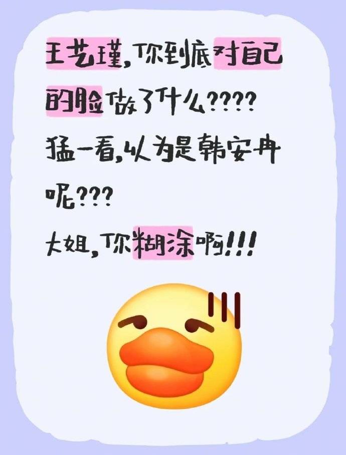 此外,她还补充了一个细节,称近期可能是因为“上火导致嘴肿”,影响了面部观感,希望大家不要以一次状态就下定论。整个回应,王艺瑾试图将话题从“容貌质疑”引向“职业需求”与“健康审美”的探讨。