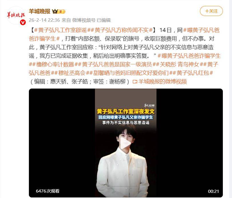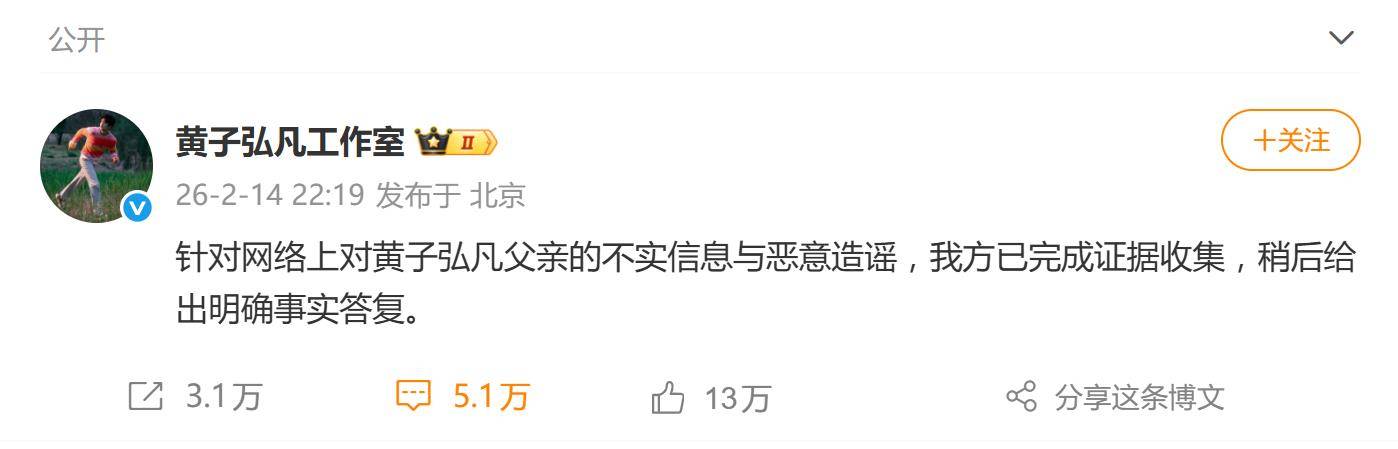 对此,黄子弘凡工作室的反应堪称“闪电战”。在传闻发酵的几乎同一时间,工作室便发布严正声明,直指网络信息为“不实信息与恶意造谣”,并强硬表态:“我方已完成证据收集,稍后给出明确事实答复。” 这波果断切割、正面硬刚的操作,给焦急的粉丝吃了一颗定心丸,也让围观网友嗅到了不同寻常的火药味。