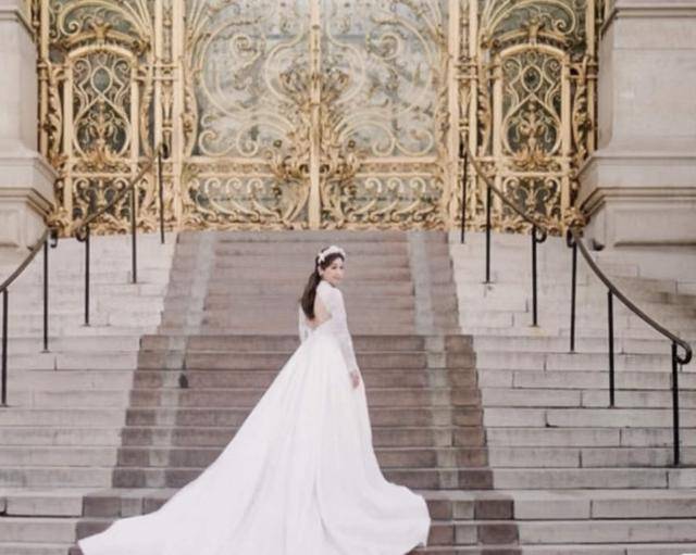 从赵希洛分享的结婚照片可以看到,她穿着漂亮的白色定制婚纱,化着精致的妆容,非常抢镜。