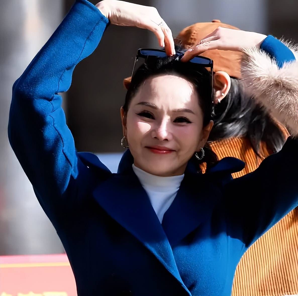 57岁的伊能静穿着深蓝色大衣现身联排,不仅全妆出镜,头上还戴着墨镜,很有时尚感,看得出来是有精心打扮过。
