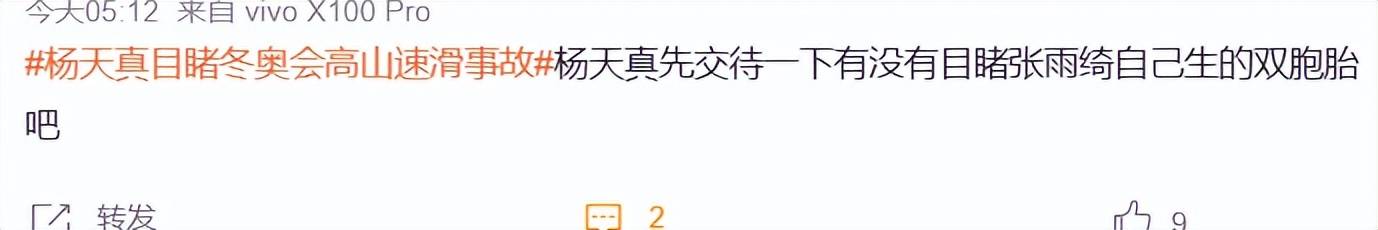 最近杨天真在网上发了个动态,声称自己亲眼目睹了一场冬奥会事故,大发感慨。