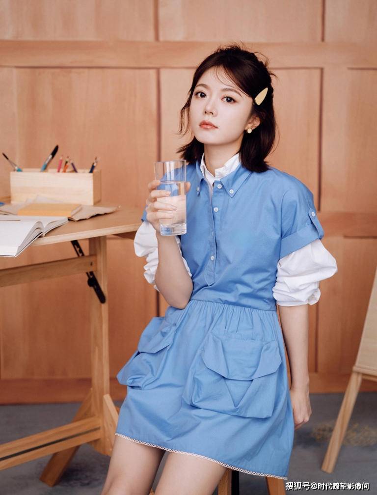 先夸爆她的造型,每一处细节都踩在审美点上,把“甜酷平衡”拿捏得恰到好处。她身着工装风蓝裙,利落的剪裁褪去所有冗余装饰,水洗质感的面料柔和了工装的硬朗,将少女的挺拔身姿展现得淋漓尽致;内搭一件简约白衬衫叠穿,领口微微敞开,袖口随意微卷,既保留了学院感的干净纯粹,又中和了工装面料的凌厉,像极了Miu Miu 2026春夏系列推崇的少女感与先锋感共生的风格,清丽又有力量。复古棕皮包斜挎肩头,皮质的质感沉淀出几分复古韵味,搭配同色系短靴,利落又精致,没有夸张配饰堆砌,却在细节处尽显独特时尚品味,完美避开了工装风显沉闷、学院风显幼稚的雷区。