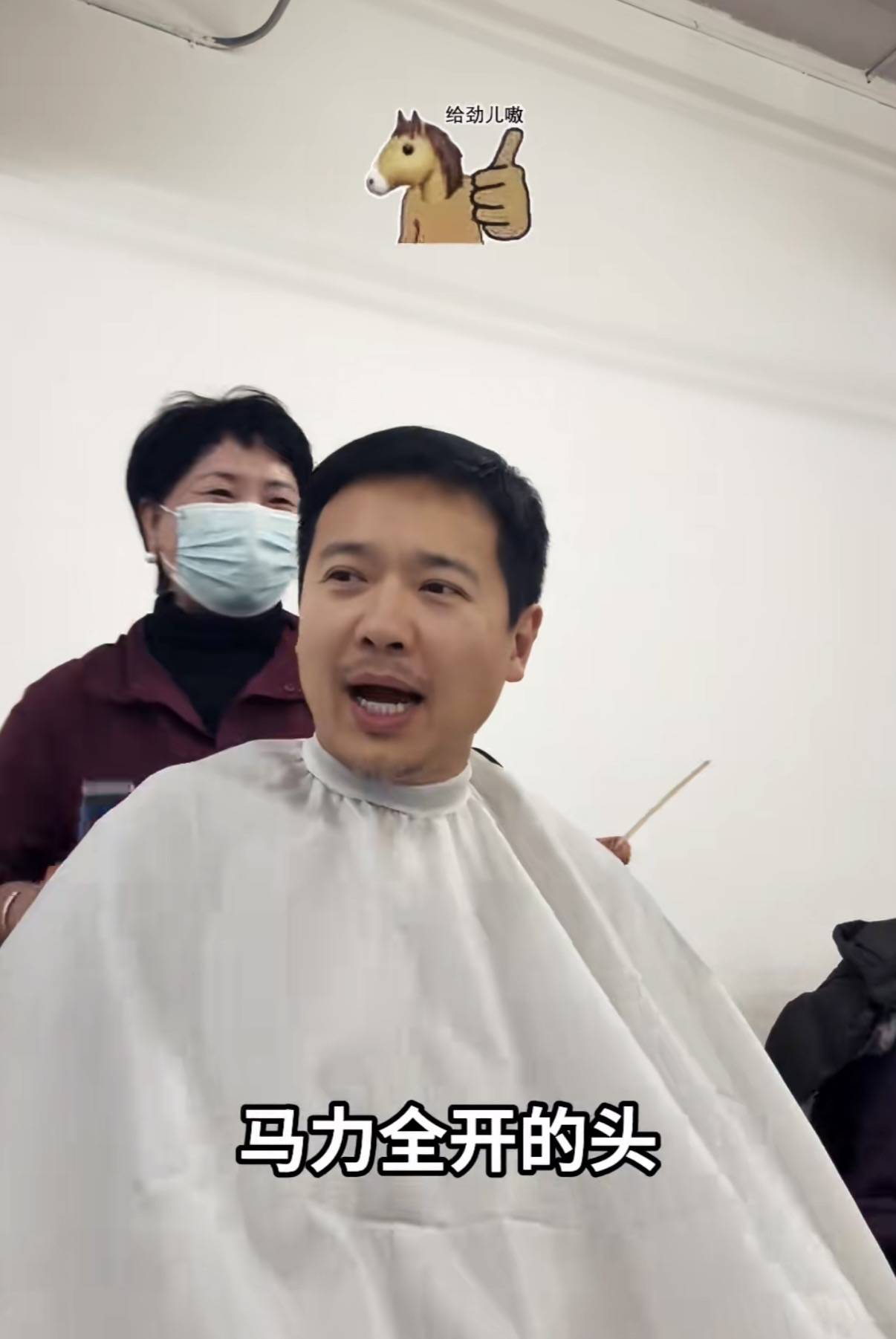 高云翔强调,自己想要一个马力全开的头。毕竟是马年了、发型也该换一换了。剪头发就得有一个好意头,理发师很耐心地倾听高云翔的请求。