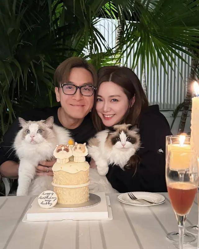 今天清晨,汤洛雯在社交平台上分享了庆祝的照片,并展示了特意为丈夫准备的双层蛋糕。蛋糕上还摆放着两只爱猫的公仔,细节之处尽显心思。