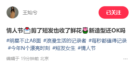 杜淳情人节好浪漫!大早上送老婆999朵蓝色妖姬,王灿剪短发超美,期待杜淳更多的新剧呈现,同时也希望王灿去拍剧,这么高的颜值不拍戏倒是有点可惜。