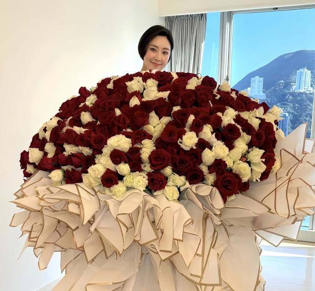 从张玉珊分享的照片可以看到,她收到的这束巨型玫瑰花,差不多快要她的身高这么高了。据估计应该有999朵玫瑰,这束花的价格也是相当不菲。