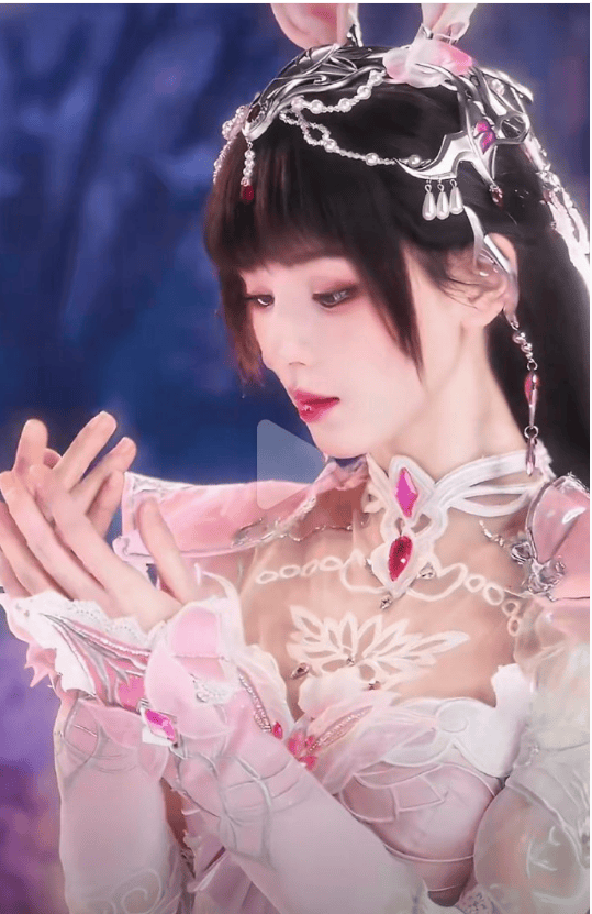 张予曦的造型精准复刻了小舞的粉裙、兔耳等标志性元素,被粉丝赞为“从动漫里走出来的柔骨魅兔”。