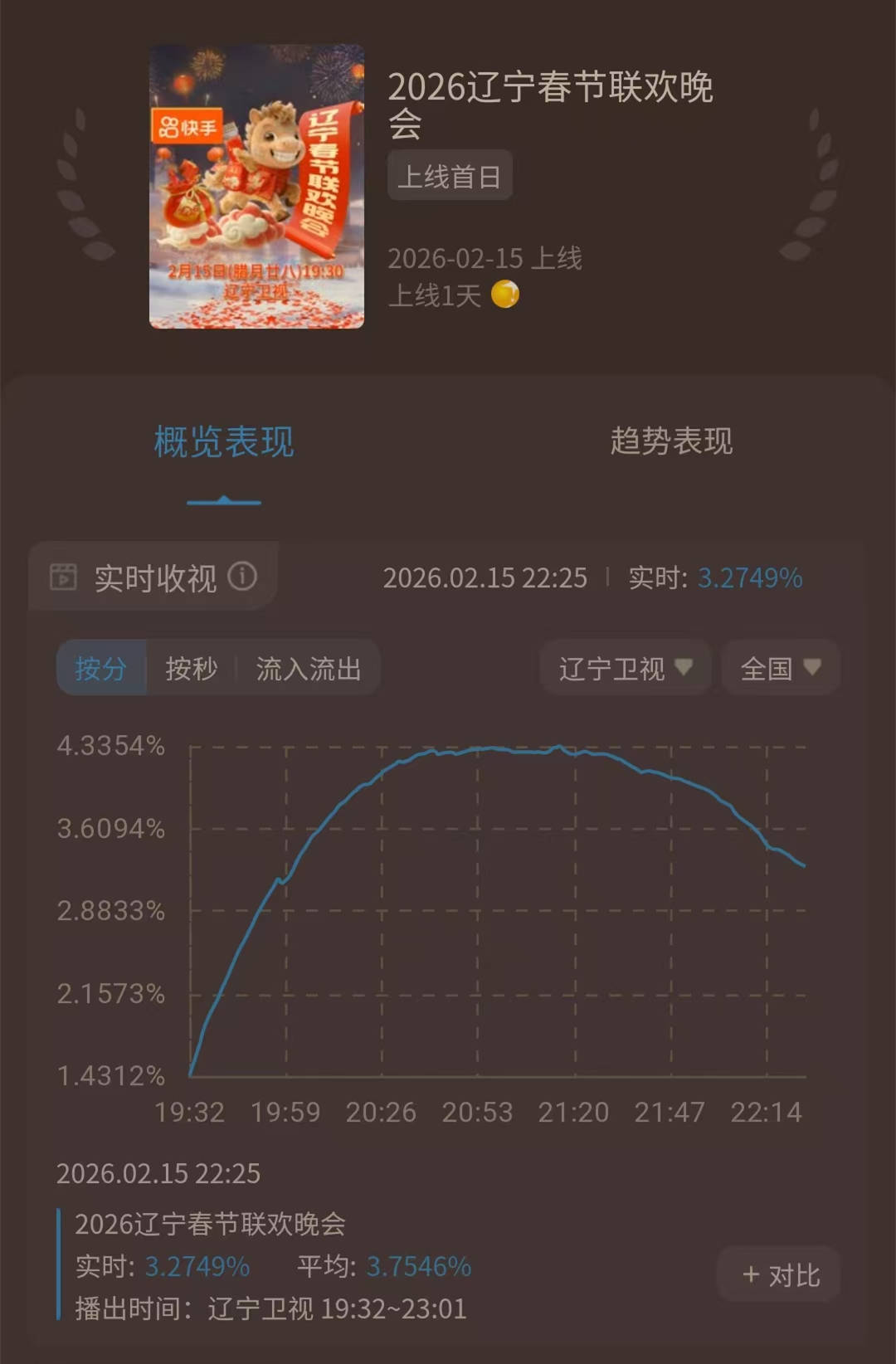 腊月二十八,辽视春晚在辽宁卫视播出。收视率方面,和大家预想的一样,其再次领跑,不仅仅是卫视领跑,而且是超越了央视。酷云实时上的收视率数据显示,辽视春晚开播之后收视率迅速蹿升,最终稳定在了4%以上。这个成绩,您知道放在卫视平台当中,有多高吗?