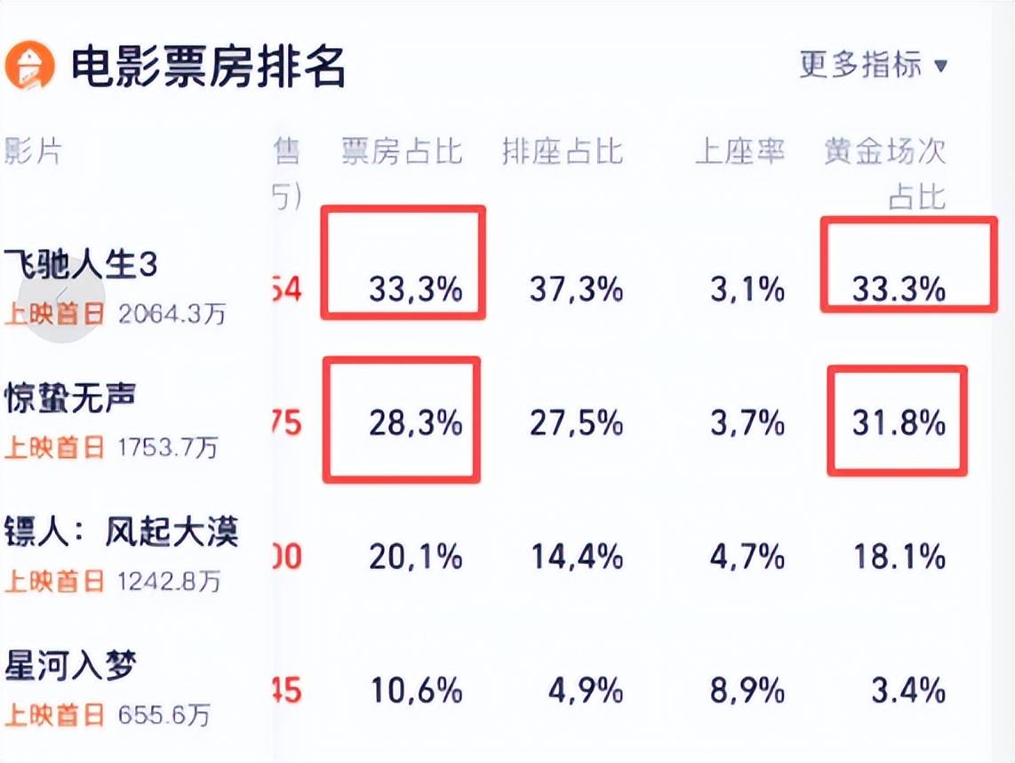 细看《飞驰人生3》的票房占比和场次占比几乎持平,感觉它拿高排片才是合情合理。