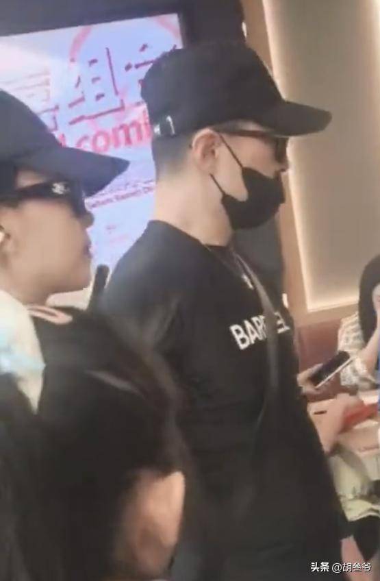 两人戴着同款情侣眼镜,全程手牵手,就连走路的步调都格外默契。