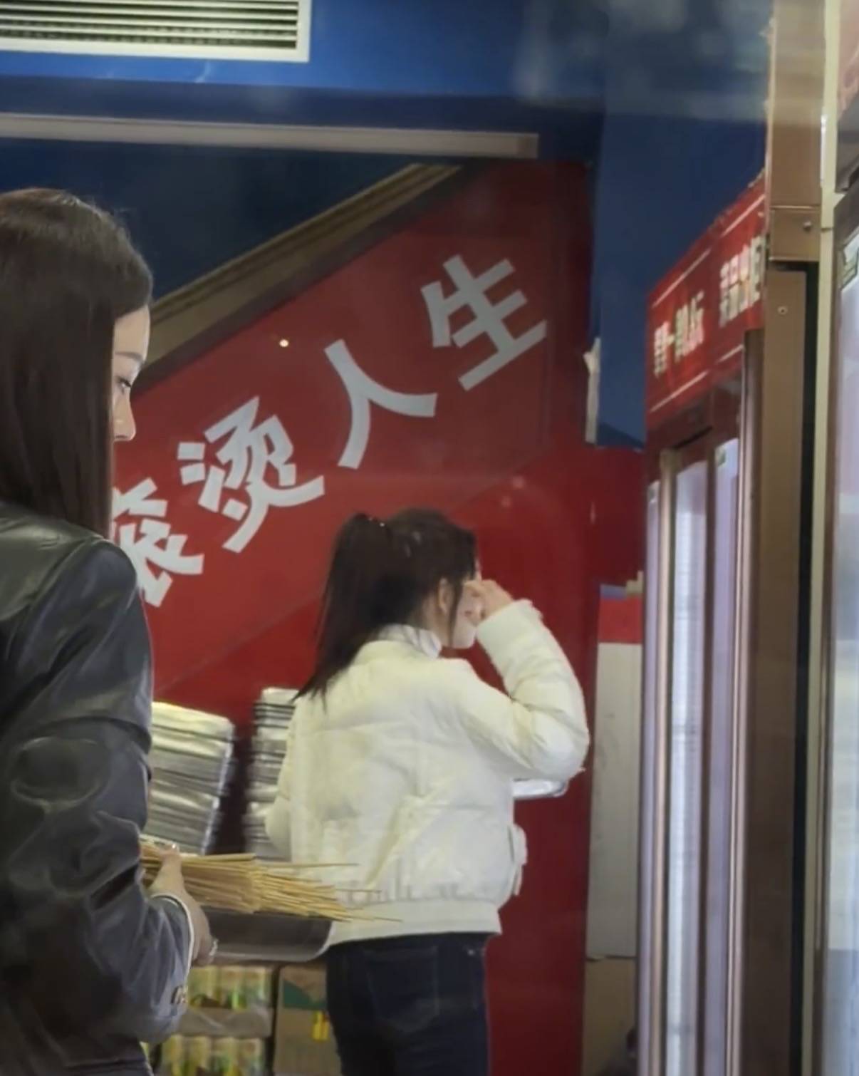 两个人的约会并没有选择吃大餐,而是来到一家很有烟火气的串串店,看样子像是烫锅鲜。