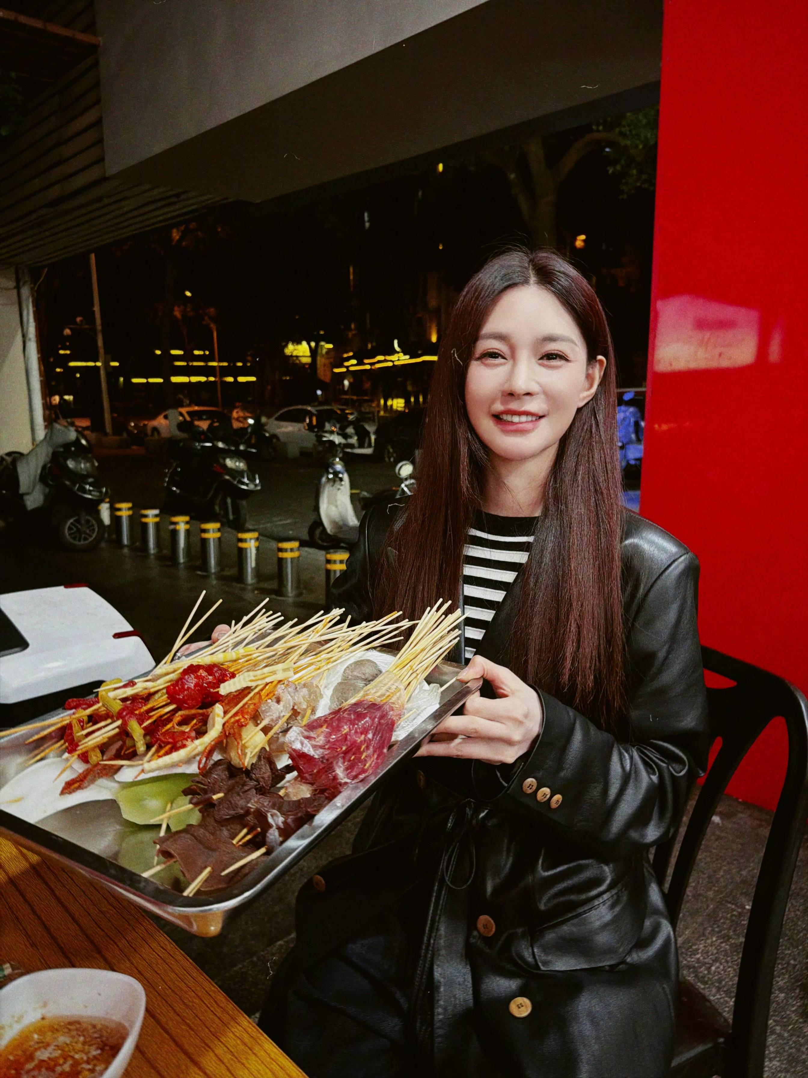 他们选了很多喜欢的串串,有肉、有菜、品类丰富。沈梦辰的气质特别好,她笑起来眉眼弯弯的很温柔。