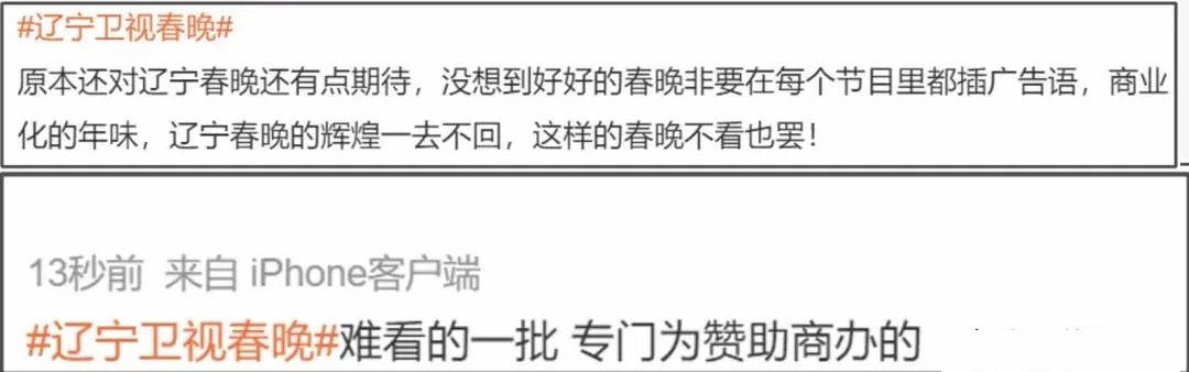 除了这些槽点,就是辽宁春晚上的广告植入太多了。不仅主持人要说、小品里也会穿插,而且重复度非常高。