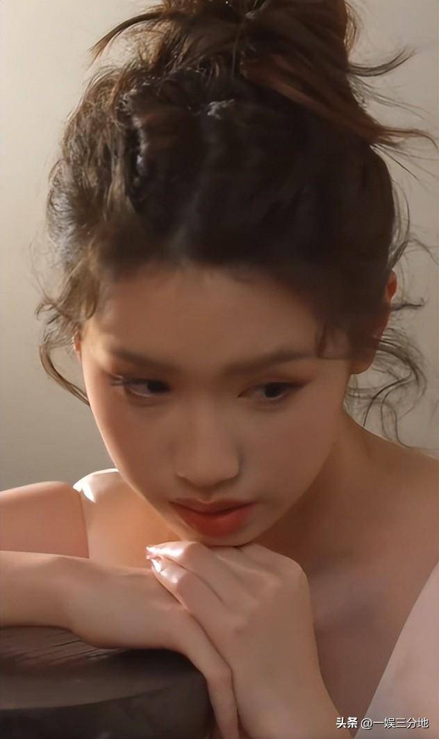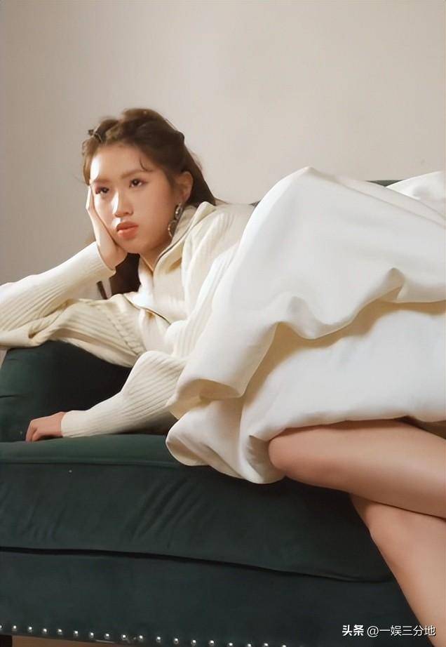 视频里她穿着一件毛衣材质的蓬蓬裙,双手托着下巴,倒是美化了些她的凸嘴和龅牙。