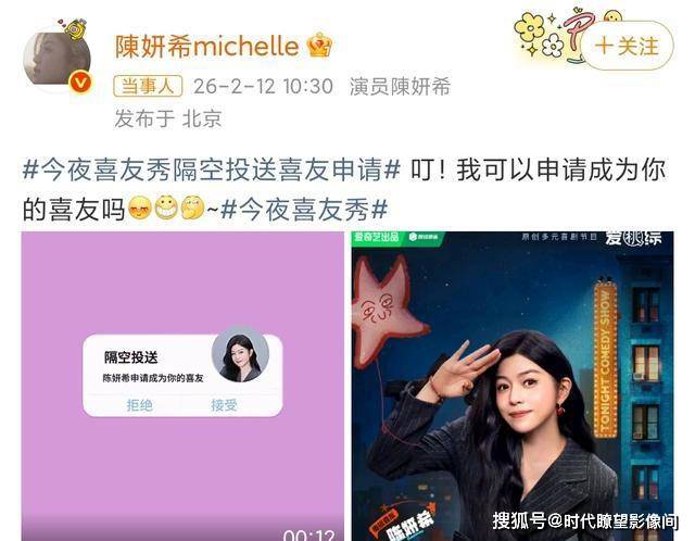 2026年2月12日,陈妍希猝不及防的一则官宣直接炸穿热搜——正式加盟爱奇艺原创喜剧综艺《今夜喜友秀》,以常驻“喜友”身份跨界挑战喜剧舞台,软萌喊话&ldq