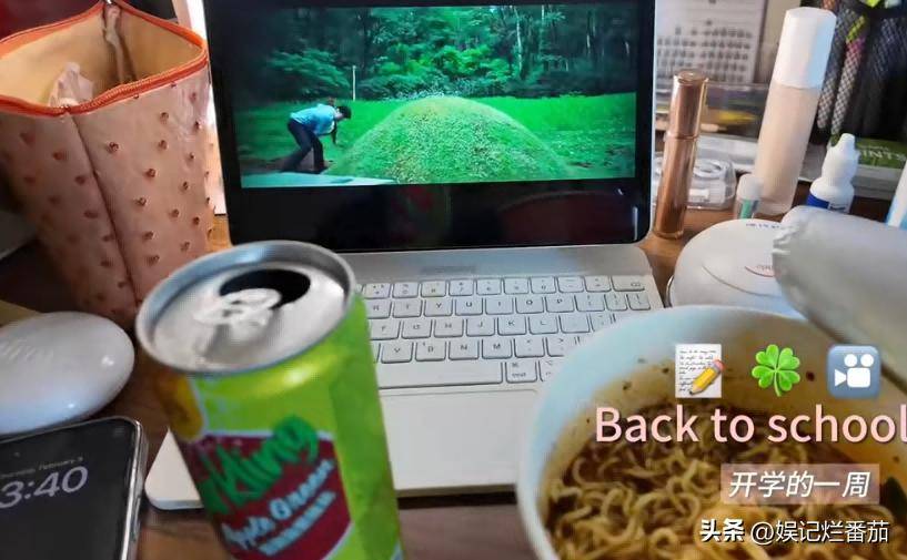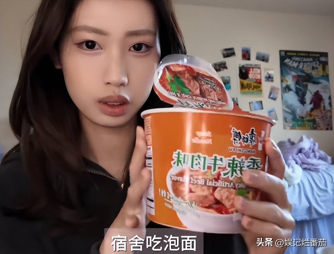让人意外的是徐朵今天吃的是泡面和饮料,这一下整的就太接地气了。