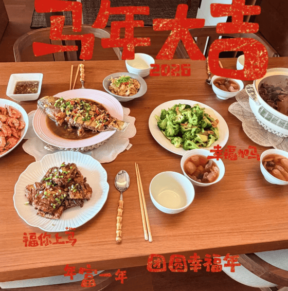 从晒出的美照背影来看,杨采钰的婆家非常豪华,老公出镜穿着皮外套一身黑,又帅又有气质,尤其是丰盛的年夜饭看着就让人想吃,鱼、虾、肉,还有汤,一样都不缺啊!丰盛的很,新的一年杨采钰还换了红红火火的手机壳,非常应景。