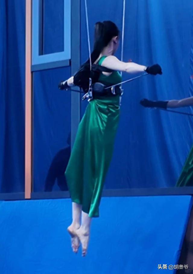 毕竟这个角色有不少高难度的动作戏,需要吊威亚、高空翻转、攀爬,吴谨言都亲自上阵,动作干净利落。