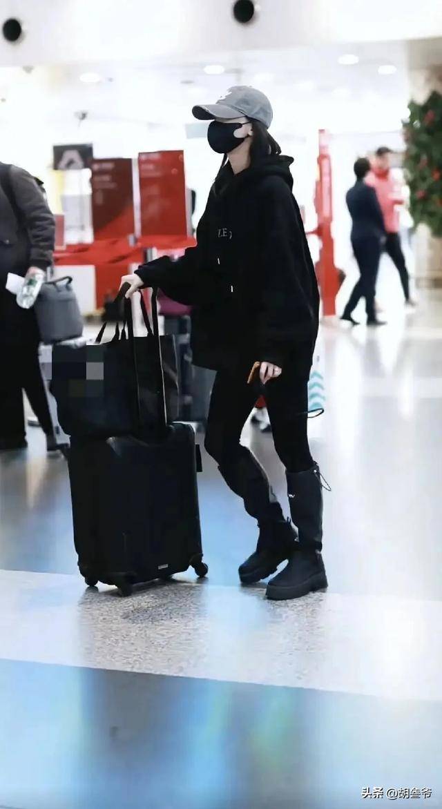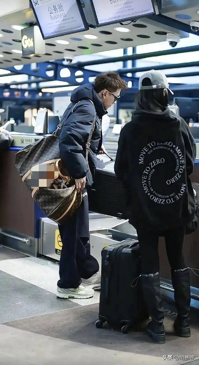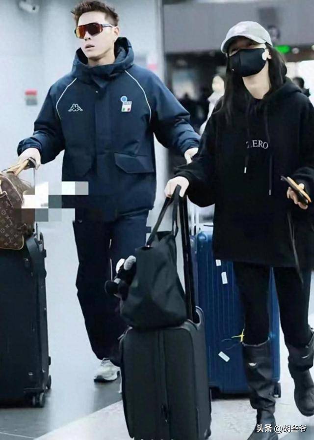 而吴谨言只拎着一个轻便的登机箱跟在旁边,俩人的分工特别自然,被网友戏称是“老夫老妻式的默契”。