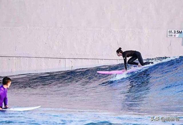 这次吴谨言是特意找了专业教练教自己冲浪,她把一头长发利落盘起,跪坐在浅绿冲浪板上,双手轻松撑在板面,身姿稳当当的。