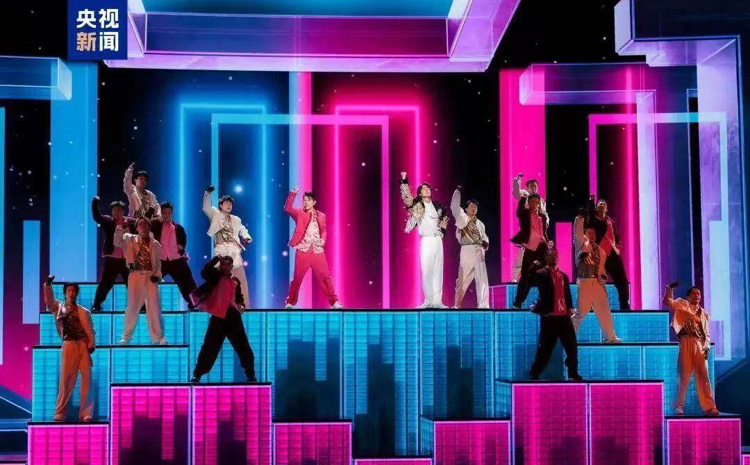 舞台设计大量运用AR虚拟场景、实时动作捕捉与无人机编队飞行,四位艺人佩戴定制化VR眼镜完成互动式演唱,北斗导航系统被具象化为舞台定位中枢,实现精准走位与视觉联动,被媒体称为“春晚史上科技浓度最高节目之一”。