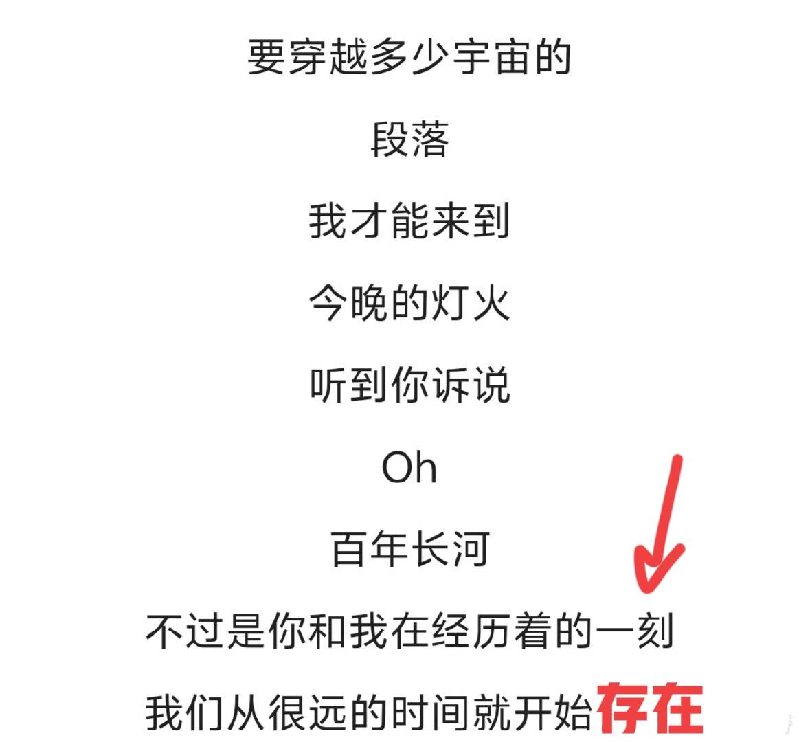 仔细看《你我经历的一刻》的歌词,其中那一句——柔波要穿越多少宇宙的段落,我才能来到今晚的灯火,看到你,经过……我们从很远的时间,就开始存在。