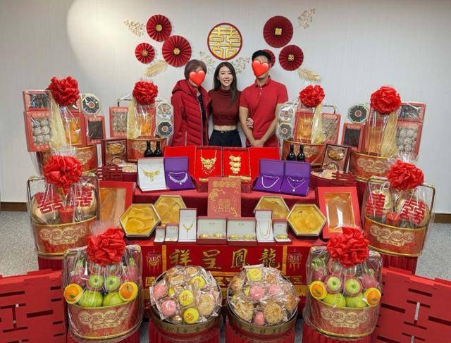 从网上曝光的照片可以看到,陈婉衡已经和未婚夫顺利完成了过大礼仪式。照片中,吃的、穿的、用的以及金器一应俱全,各种礼品看上去相当丰厚。