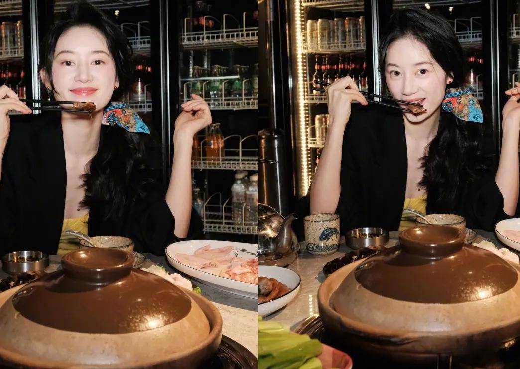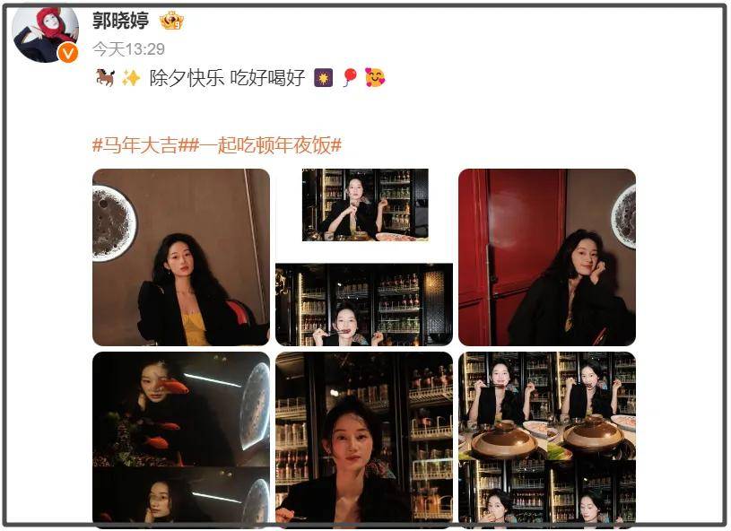 郭晓婷晒出在外面吃饭的照片,发文祝福大家“持续快乐,吃好喝好”。