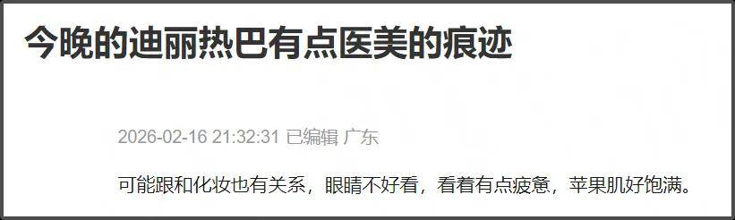 马年春晚的镜头美学可以说是美轮美奂,不少明星都凭借春晚扩大知名度。但在分会场表演的迪丽热巴,却因为妆造问题上了热搜,化妆师的评论区都已经沦陷了,甚至有网友怀疑她是不是做了医美。