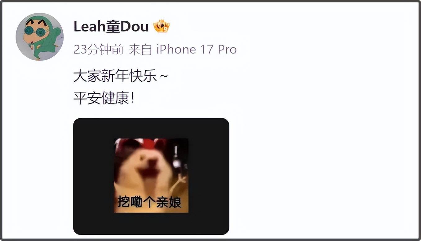 王菲下班之后,女儿窦靖童在社媒发文祝大家春节快乐,还配了一个“挖嘞个亲娘”的表情包,王菲唱歌还是一如既往地好听啊。