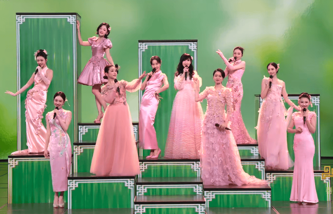 《立春》节目集齐了周慧敏等女歌手,都身着粉色礼服裙演唱,有的穿旗袍,有的穿洋装,仿佛“浪姐成团夜”。