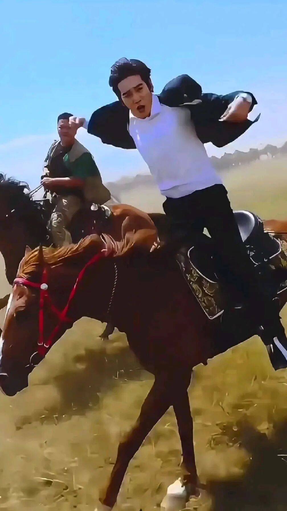 于适凭借专业骑术精准控马:马匹躁动时轻拍马颈安抚,转弯时以缰绳流畅引导,甚至完成“站立脱缰歌唱”“松缰抱拳拜年”等高危动作,展现人马合一的绝对默契。