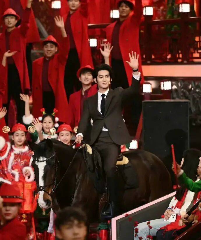 这是国内春晚首次采用真马实景演出的形式,颠覆了传统舞台设计,被观众称为“鲜衣怒马少年郎”的具象化呈现。在空间有限、灯光复杂、现场嘈杂的演播厅环境中,动物控制风险极高。