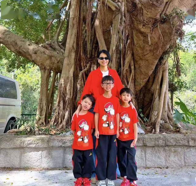 胡杏儿与老公李乘德结婚10年,育有三个儿子。
