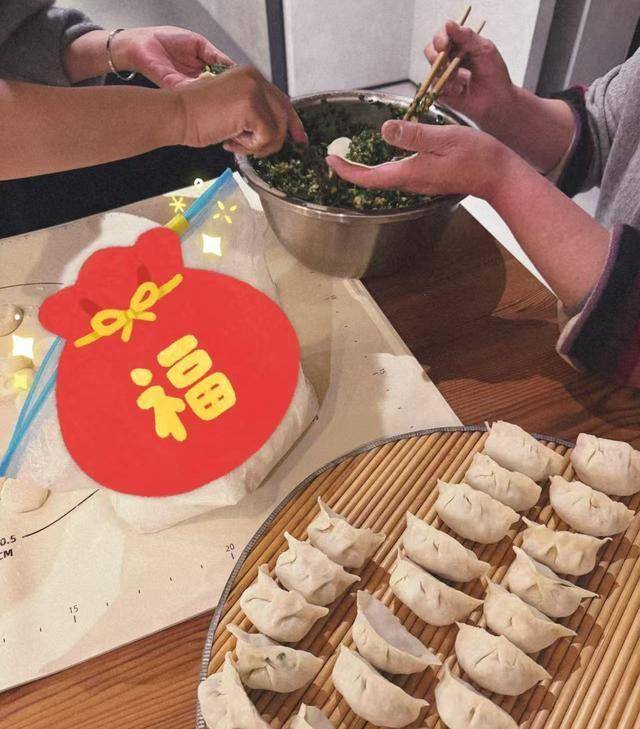 台湾女星杨丞琳陪伴着老公李荣浩在祖国大陆吃年夜饭,一同包饺子。