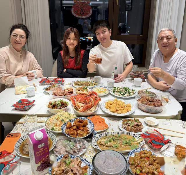 贾乃亮也公开跟女儿甜馨吃年夜饭的合影,桌上的饭菜不少,看来是一大家子聚餐。