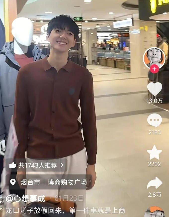 2026年1月23号,一名名为“心想事成”的抖音用户发布了一段试衣视频,并附上文字“龙口儿子放假回来,第一件事就是上商场试衣服”。