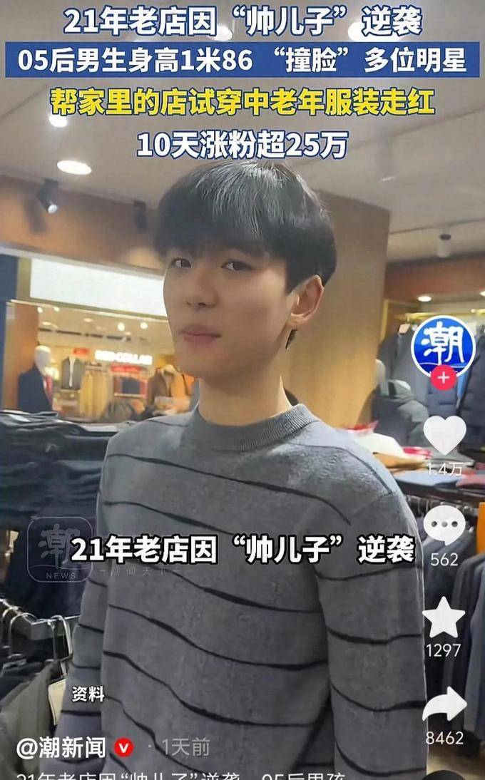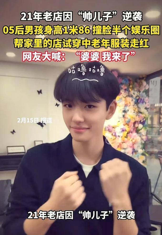 这段视频的发布者是马维健的母亲。据了解,她经营着一家有21年历史的老店,专门销售中老年男士服装。但由于店内的生意并不红火,她决定将寒假期间的儿子请来担任模特和宣传服装的工作。