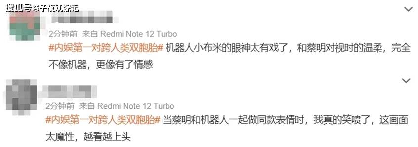 比如说那个E1机器人突然伸长脖子的那个笑点,虽然全场都笑翻了,但是我发现蔡明老师接话的时候有那么0.5秒的停顿。