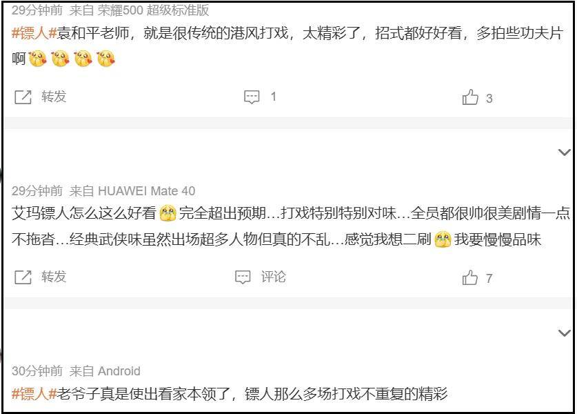 从观众反馈看,《镖人》全程打戏含量远高于文戏,喜欢打戏的观众看爽了。