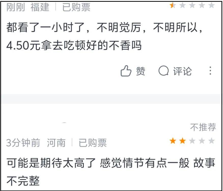 ——哎呀算了,据说特效还行,一搜全是夸夸夸,就是几乎没有路人进场,票房已垫底,信不信好评看个人了。