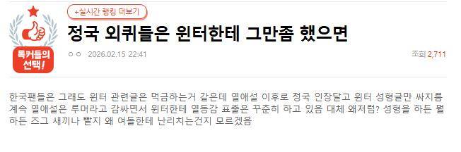 帖文直指问题核心:“韩国粉丝大多已对相关帖子置之不理,但自从恋情传闻出现,顶着田柾国头像的用户就不断发布关于Winter整容的言论。”发帖人犀利质问,这些粉丝一边坚称恋情不实,一边却将对自身偶像的过度保护欲,乃至不安全感,投射到另一位无辜的女偶像身上。“无论她是否整容,这些人为何不能专注支持自家偶像?”
