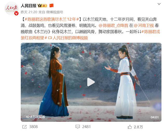 不过要说最出圈的,大概就是陈丽君的《木兰行》,连人民日报都忍不住点赞,说它“以越剧风骨,舞动家国春秋”。
