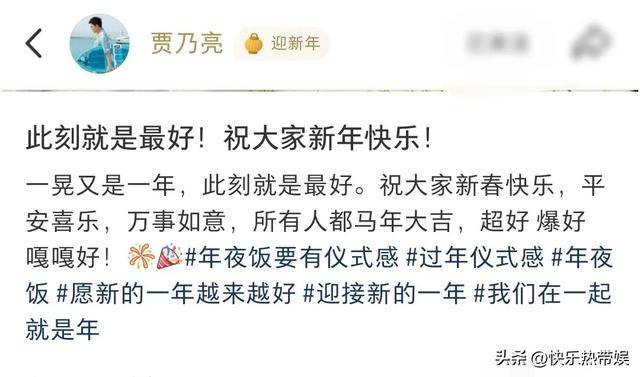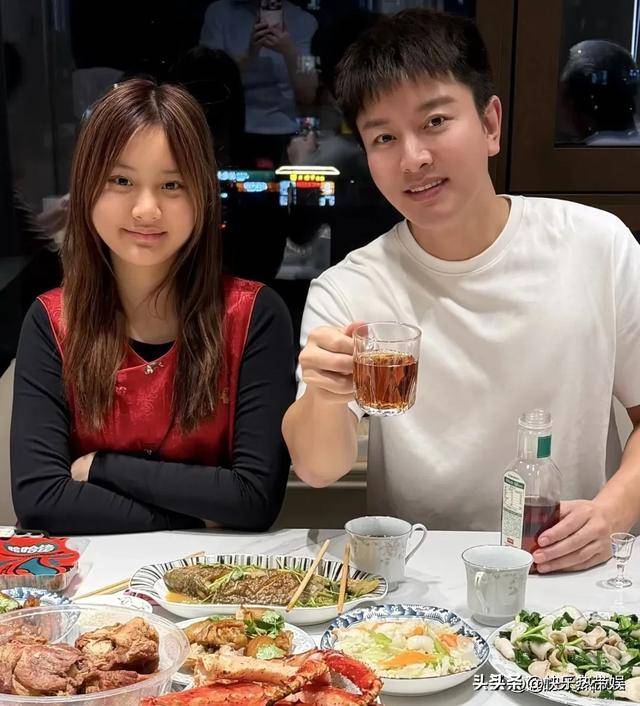 餐桌上菜品丰富,帝王蟹,炸肉段,还有鸡腿,牛肉等等。贾乃亮还有他的父母举杯对着镜头,甜馨则是双手环抱,动作自然。贾乃亮还配文祝福大家新年快乐,万事如意,马年大吉。