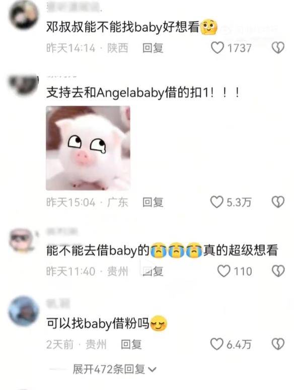 然而,正当借粉计划风头更劲时,有网友建议,邓超应该考虑与baby合作,毕竟baby的粉丝数早已突破3700万。要是两人合作拍视频,邓超的粉丝数肯定能迎来一波猛增。这个提议很快引发了热烈讨论,网友们纷纷期待邓超和baby的合拍视频。