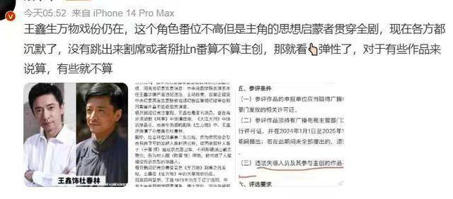 单纯从戏份来看,王鑫不算是主创之一,本来是不该影响到评奖的。