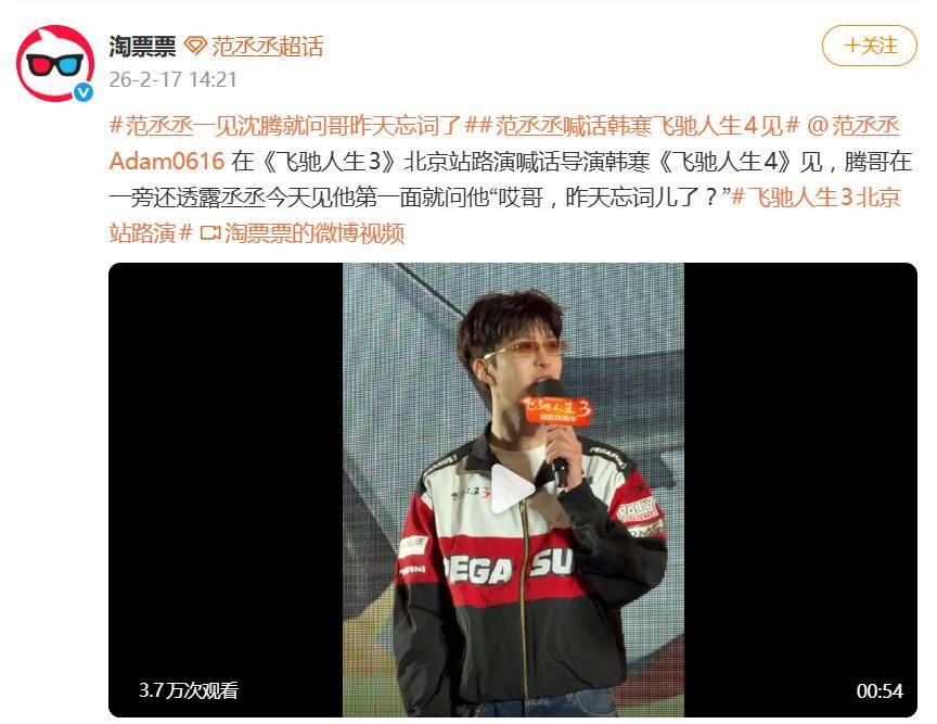 2月17日,《飞驰人生3》北京路演现场,范丞丞一句冲着沈腾的“哥!昨天忘词儿啦?”,直接让全场笑炸,瞬间冲上热搜。这波对春晚“失误名场面”的贴脸开大,堪称内娱喜剧人“售后”的顶级幽默。