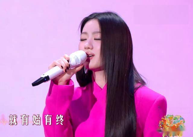 这次出现在北京春晚,她不再唱慢歌,而是换上火龙果色的西服套装,演绎了一首欢快的《我表示理解》。